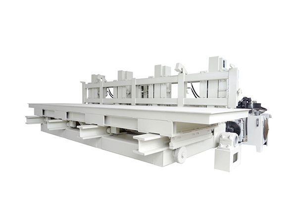一、工作原理 坯體在切割后,由拖坯吊具將坯體連同模具側(cè)板放置到翻轉(zhuǎn)臺上,啟動翻轉(zhuǎn)臺,將坯體連同模具側(cè)翻版翻轉(zhuǎn)90°,去除底部廢料,翻轉(zhuǎn)臺再次啟動翻轉(zhuǎn)回初始位置,拖坯吊具將坯體連同側(cè)板吊至釜前蒸養(yǎng)小車上,從而提高廢料的利用率。二、特點1、液壓驅(qū)動,翻轉(zhuǎn)更平穩(wěn)。2、齒輪齒條同步確保運行更順暢平穩(wěn)。